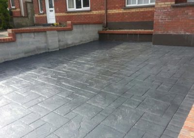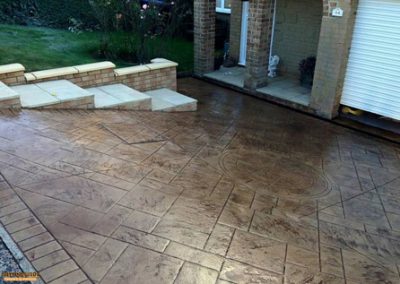 An imprinted concrete driveway is a concrete surface that has been coloured to the choice of the customer and a pattern embedded onto it before it sets.
