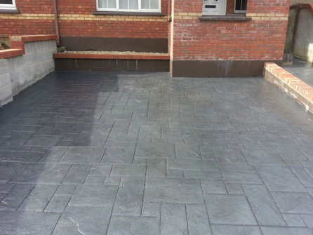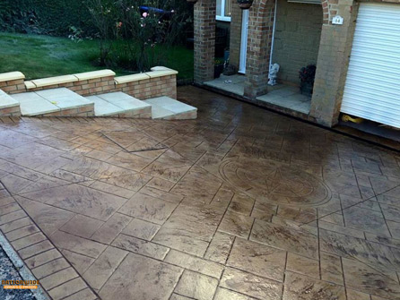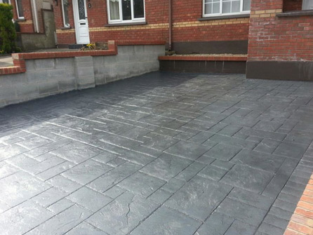An imprinted concrete driveway is a concrete surface that has been coloured to the choice of the customer and a pattern embedded onto it before it sets.